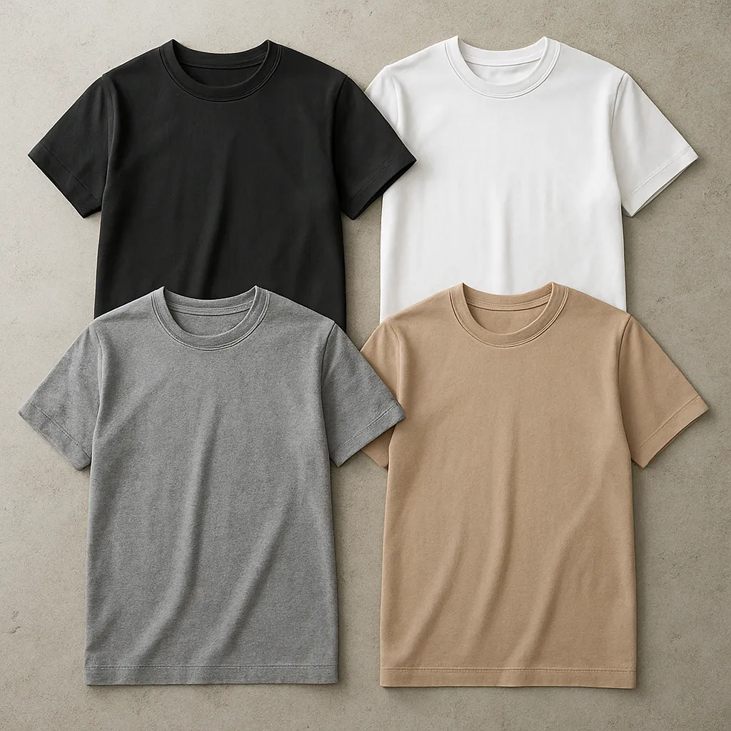 - Bawełna z dodatkiem elastanu – koszulki stają się bardziej elastyczne, lepiej układają się na sylwetce.